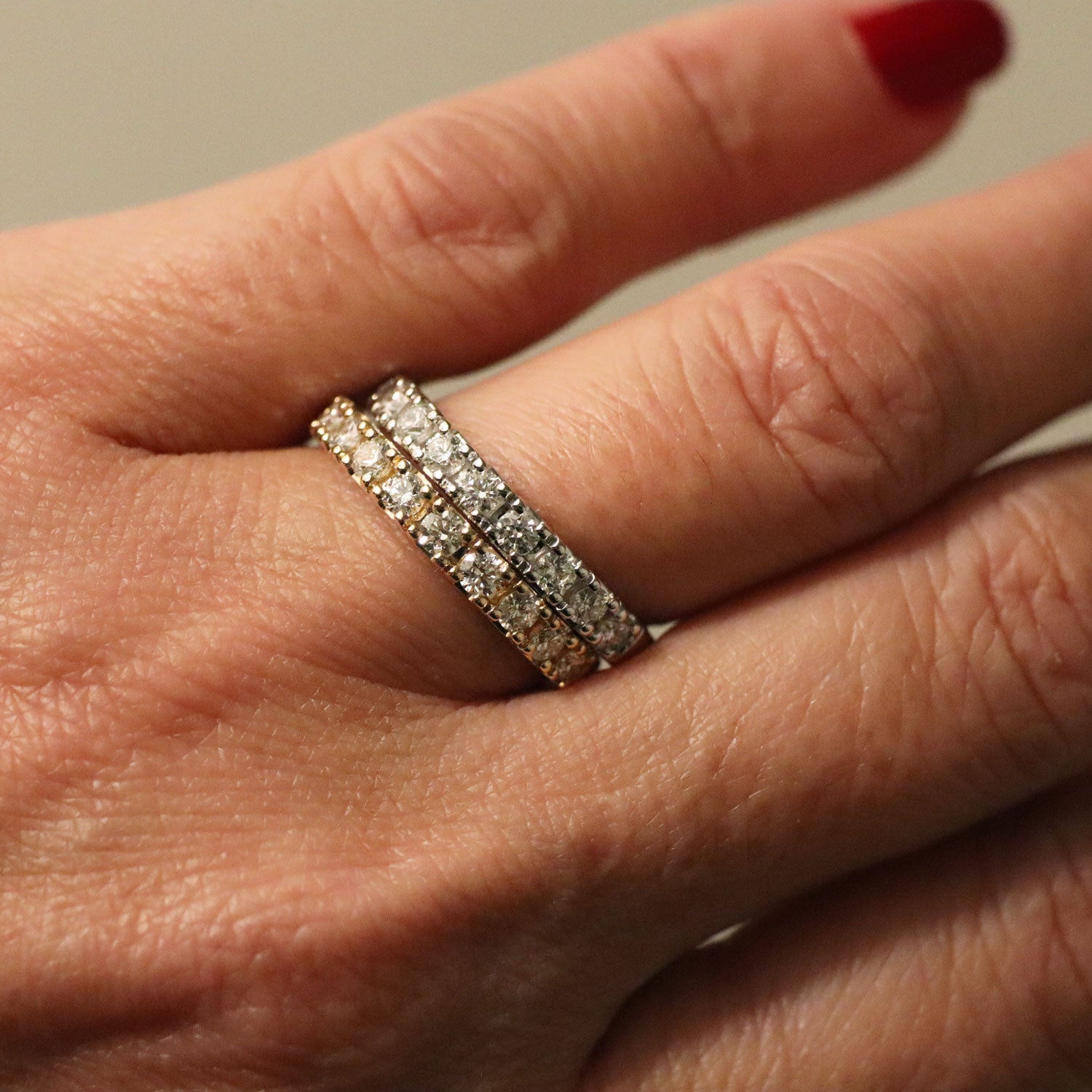 Designet er klassisk og raffineret, hvilket gør ringen ideel både som vielsesring, jubilæumsgave eller som en luksuriøs tilføjelse til din personlige smykkesamling. Den kan bæres alene for et rent og sofistikeret udtryk – eller kombineres med andre ringe for et mere personligt look.